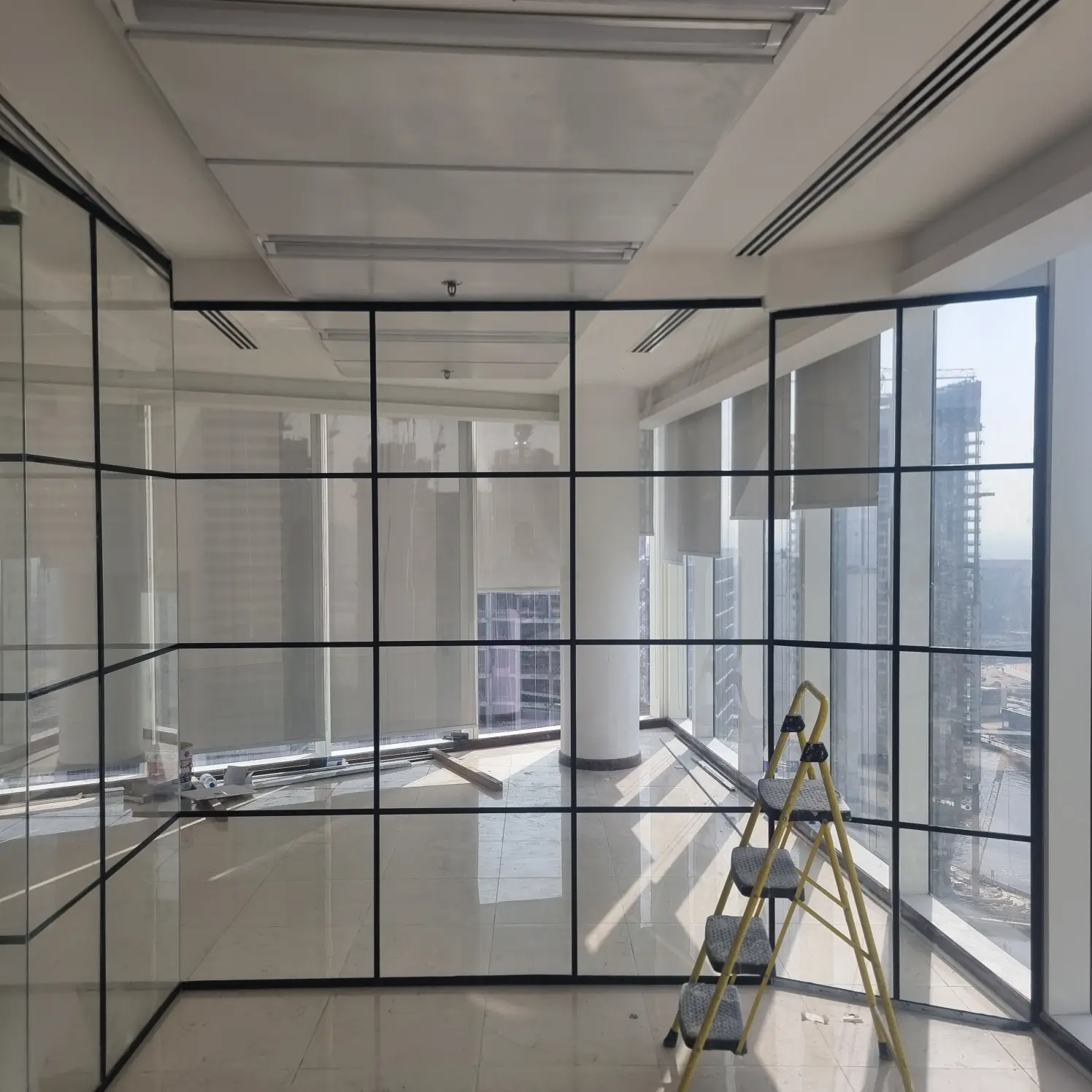 Several elements affect the overall cost of glass partitions in Dubai: