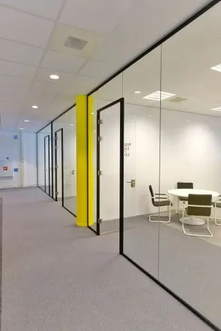 - Fire-rated glass partitions for enhanced safety