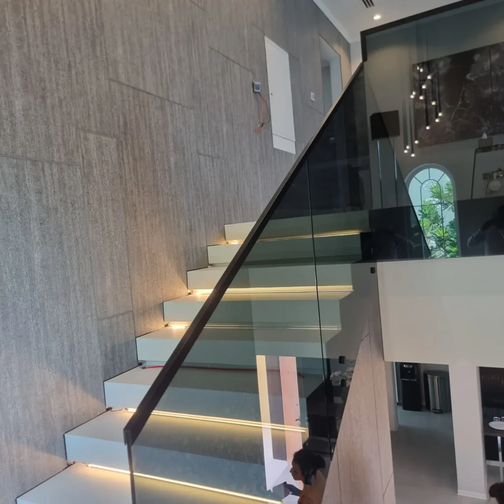 Safety is our top priority. We use tempered glass in all our railings, which shatters into small, blunt pieces if broken, minimizing injury risk. Our railings also comply with Dubai’s strict building safety regulations.